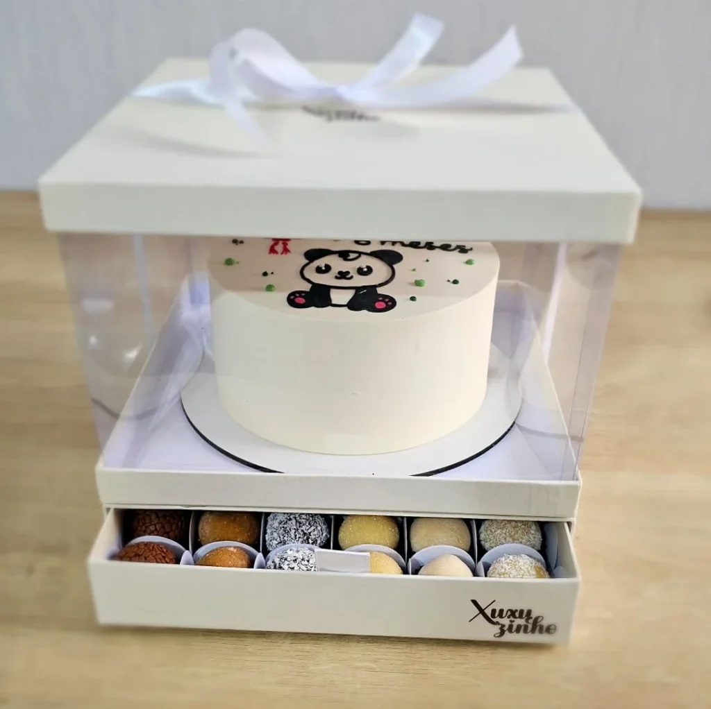 O Bentô Cake Charm é um super kit que acompanha 36 super docinhos gourmet. Tendo suporte para bolos de 1kg até 1.5kg.